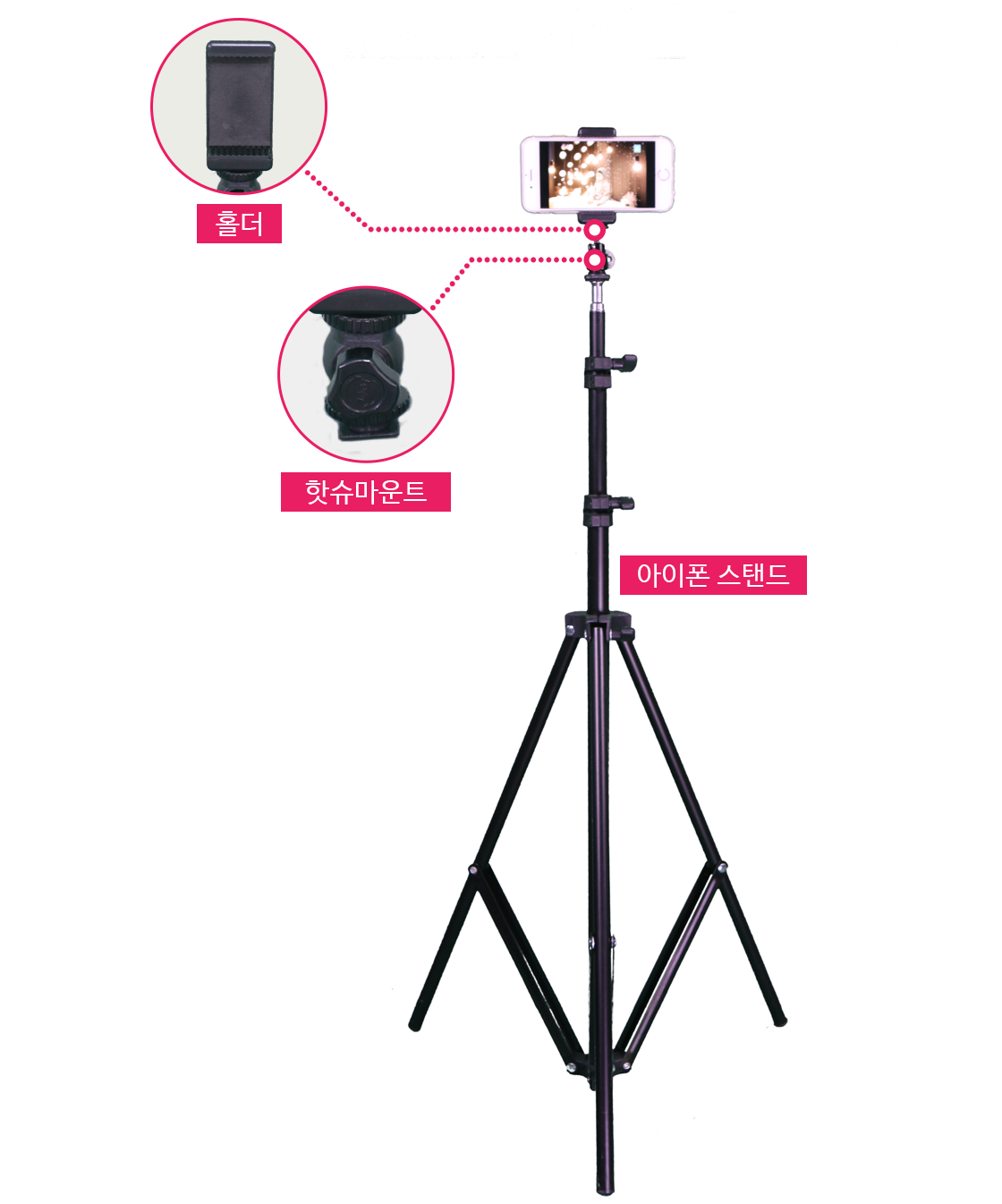 1-c아이폰을 스탠드에 고정하기 위해 사용되는 도구 : 홀더, 핫슈마운트, 아이폰 스탠드